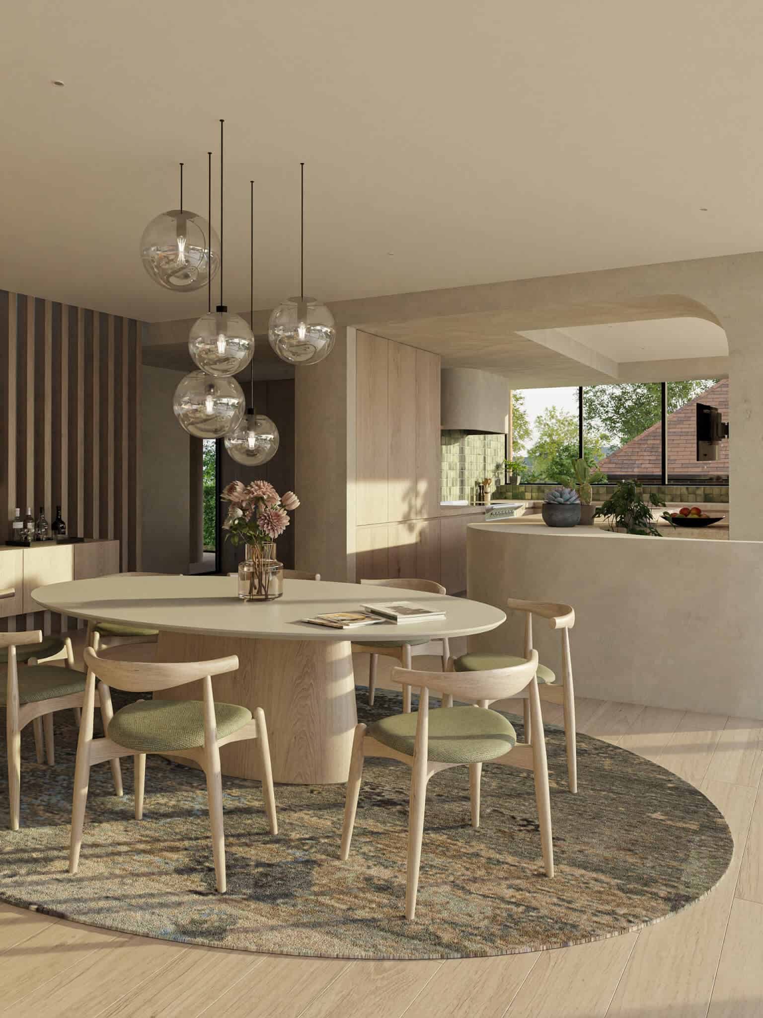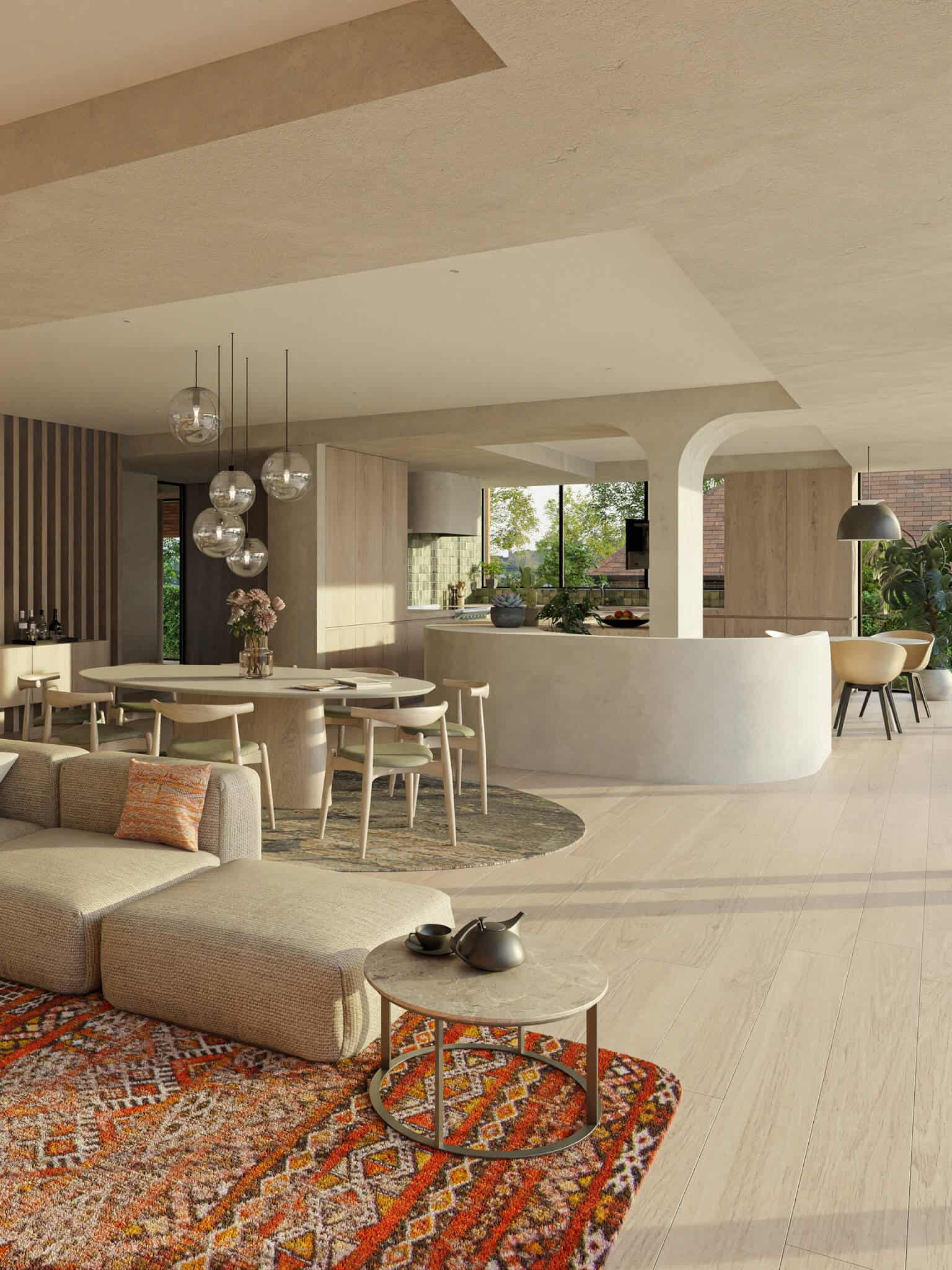 Het ontwerp maakt gebruik van klassieke materialen zoals rode baksteen, hout, gegoten beton en gepatineerd rood koper. Deze combinatie zorgt voor een harmonieuze balans tussen traditioneel en hedendaags.